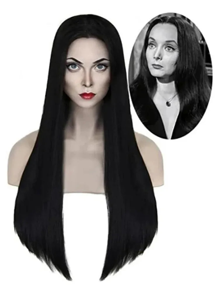 Complete your Morticia look with a Morticia Addams wig that captures her iconic long, jet-black hair. This high-quality wig features a smooth, silky texture with a natural shine, ensuring a flawless finish. Lightweight and breathable, it offers all-day comfort, whether for Halloween, cosplay, or themed events. The adjustable cap provides a secure fit, making it perfect for any head size. Effortlessly transform into the queen of gothic elegance—just pair it with a flowing black dress and dark makeup. Step into Morticia’s world with this stunning, realistic wig!