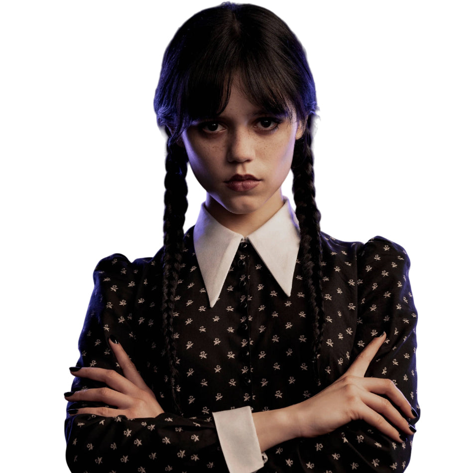Get the perfect Wednesday Addams wig for your next costume or cosplay! This long black wig with classic braids captures the signature look of the iconic character from The Addams Family. Whether you're dressing up for Halloween, a themed party, or a cosplay event, this wig will instantly transform you into the mysterious and gothic Wednesday.